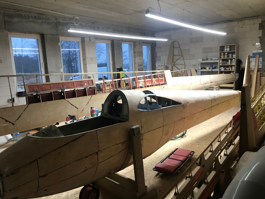 Po remoncie skrzydeł kolej na kadłub i usterzenie. Usunięto pokrycie gdzie po kilku warstwach lakieru udało się odkryć oryginalne kolory. Następnie po demontażu wszystkich części metalowych wykonano ich kontrolę i renowację.