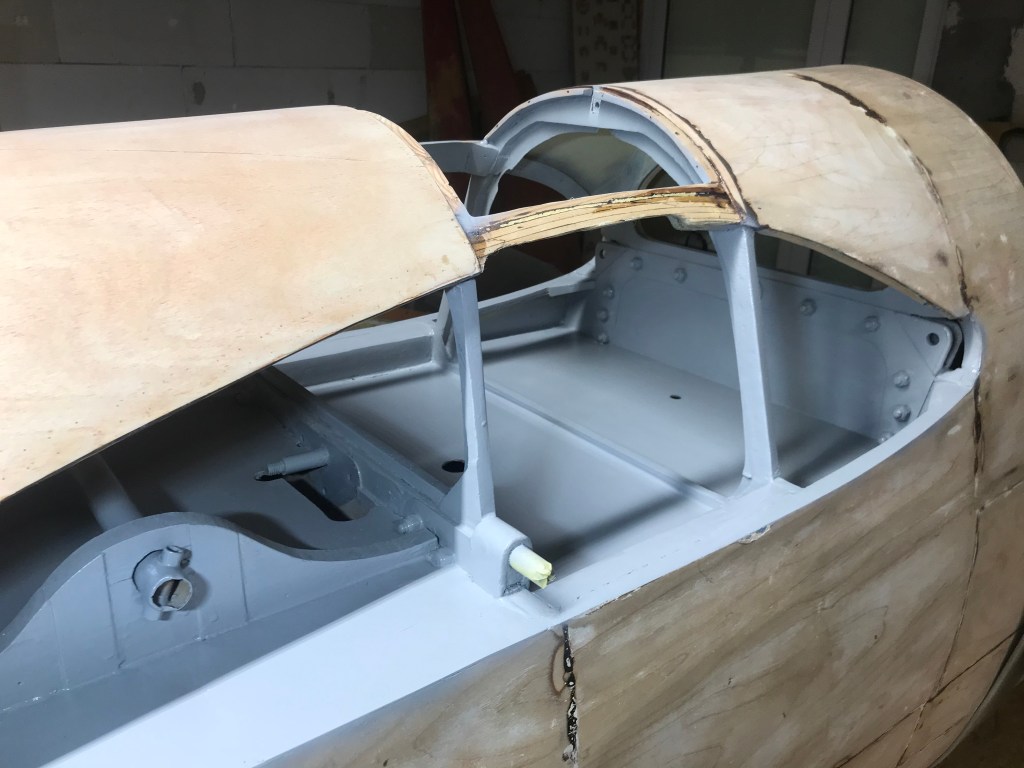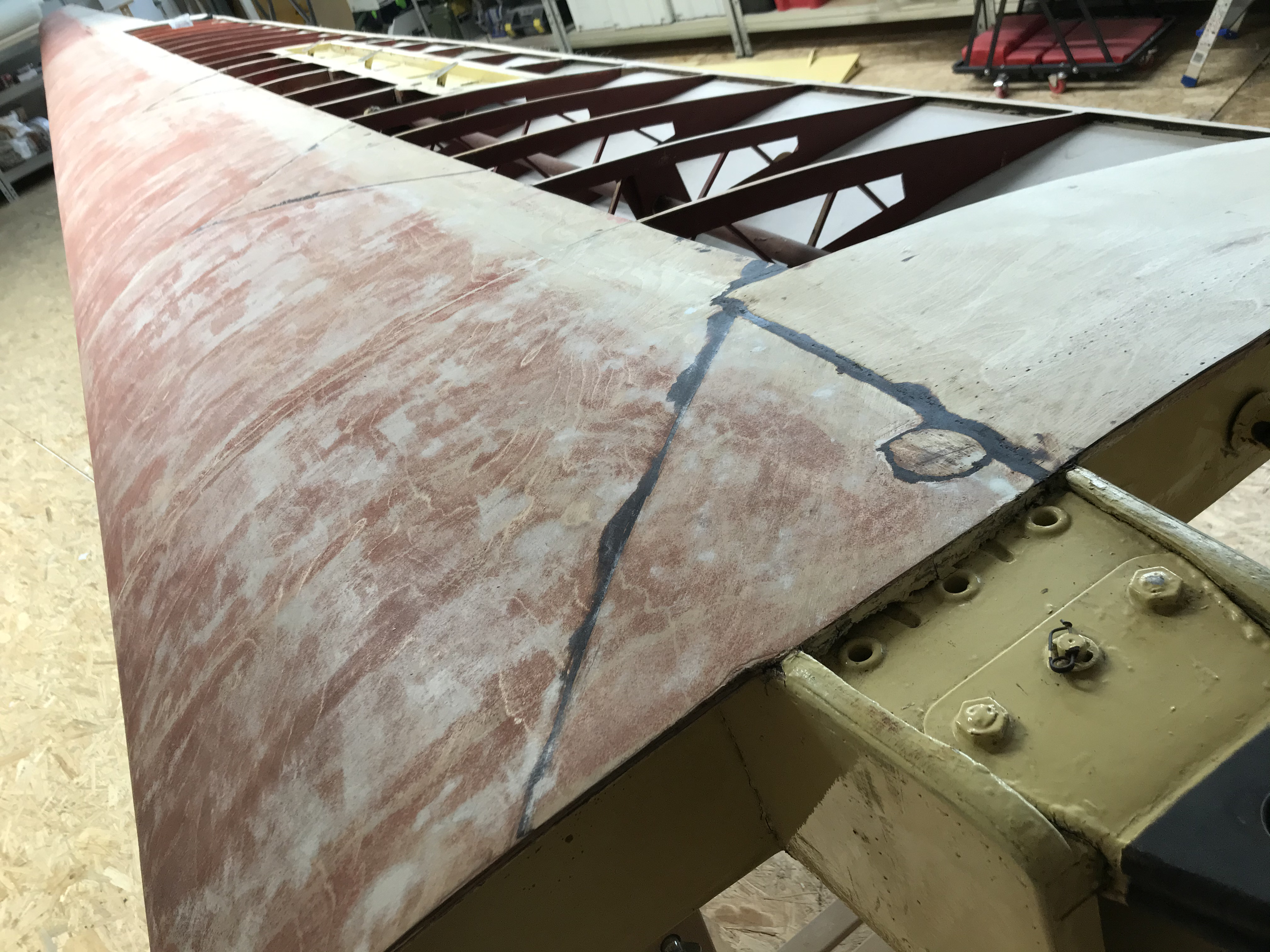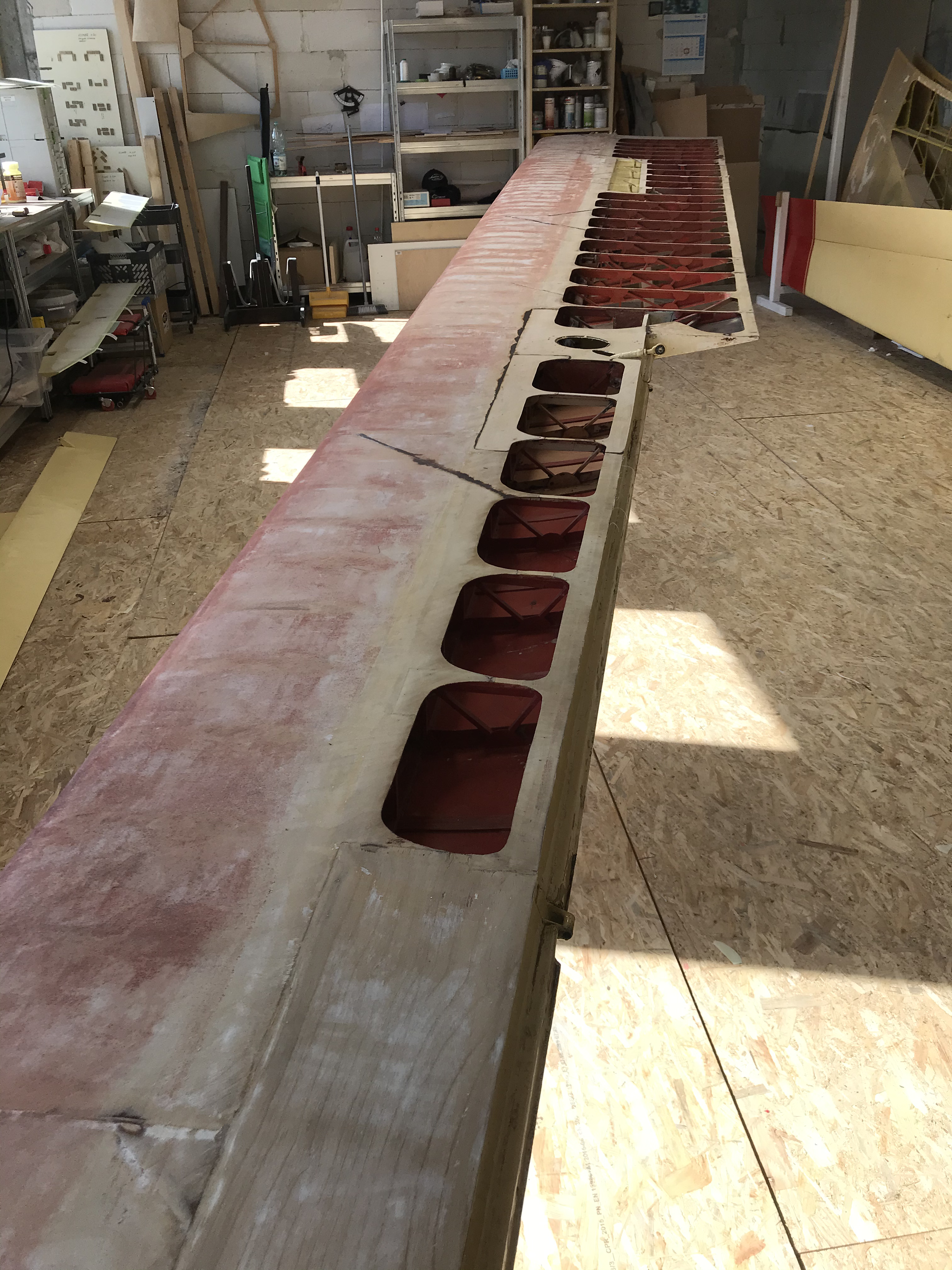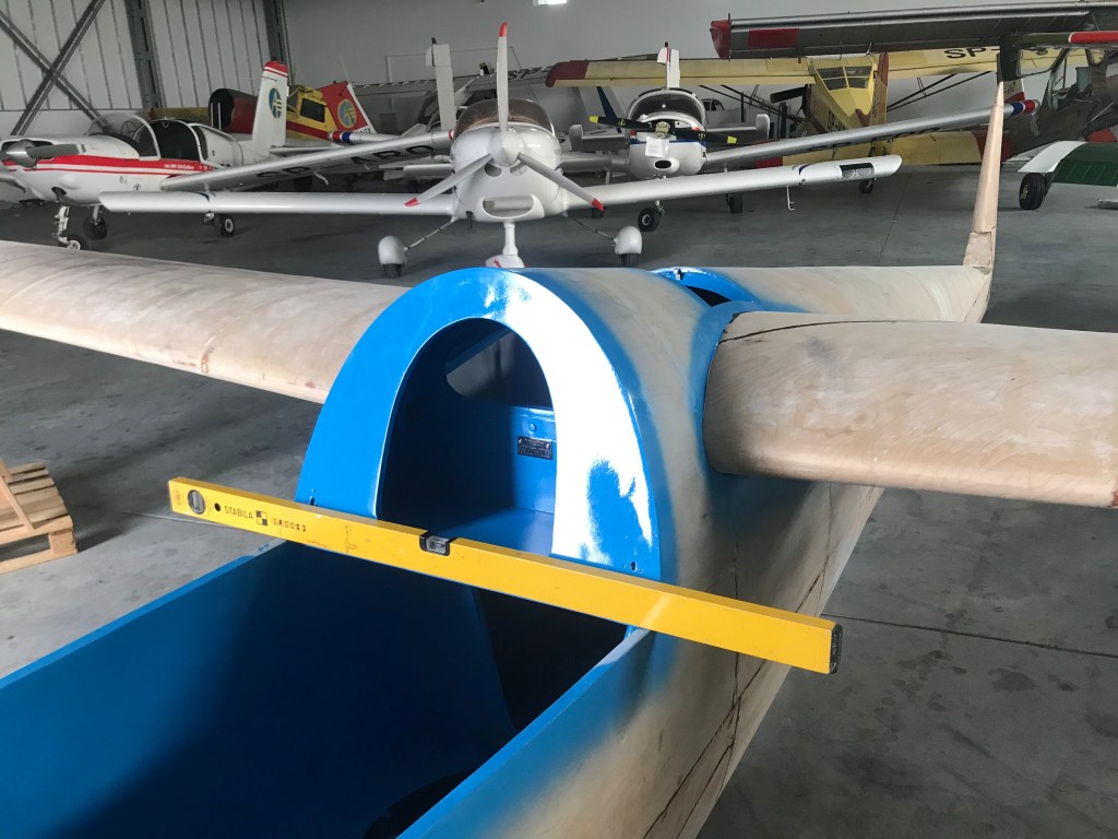 Po kontroli oraz naprawie elementów drewnianych pokryto wszystkie elementy płatowca. Przygotowano powierzchnie do położenia nowej powłoki lakierniczej.