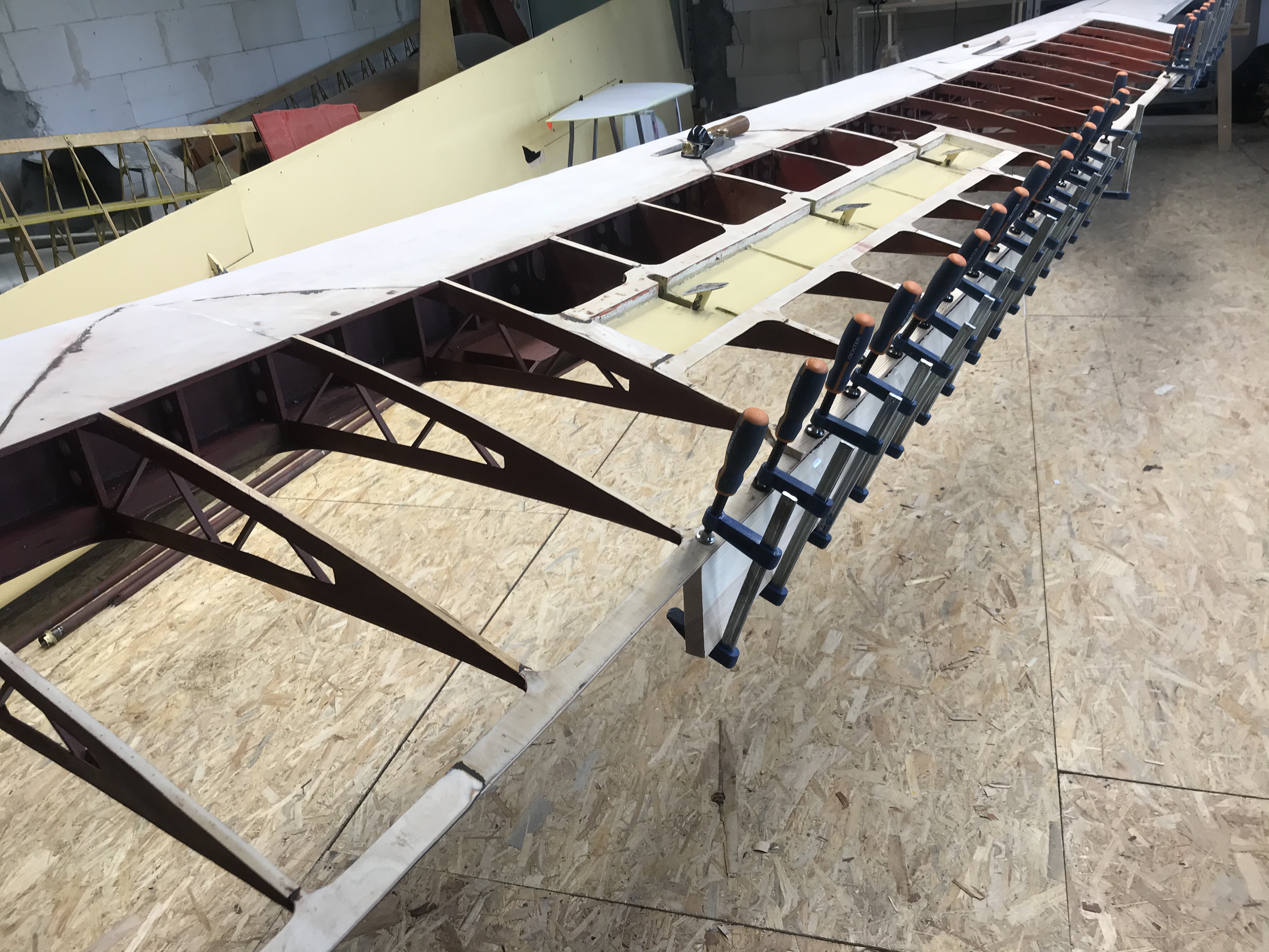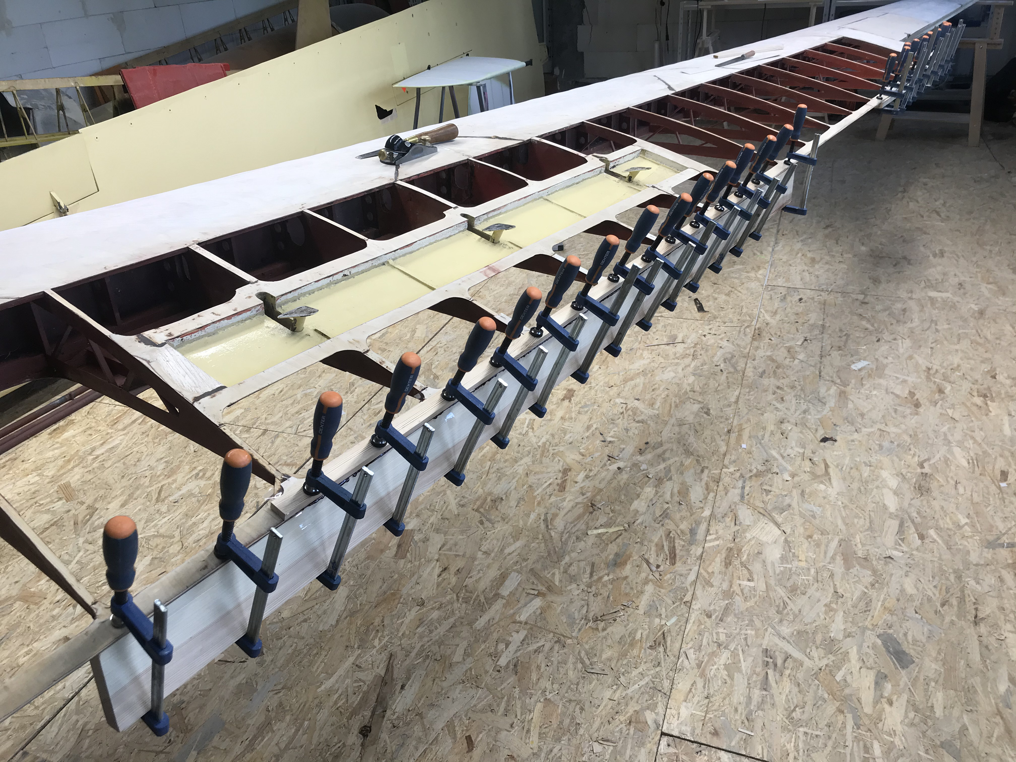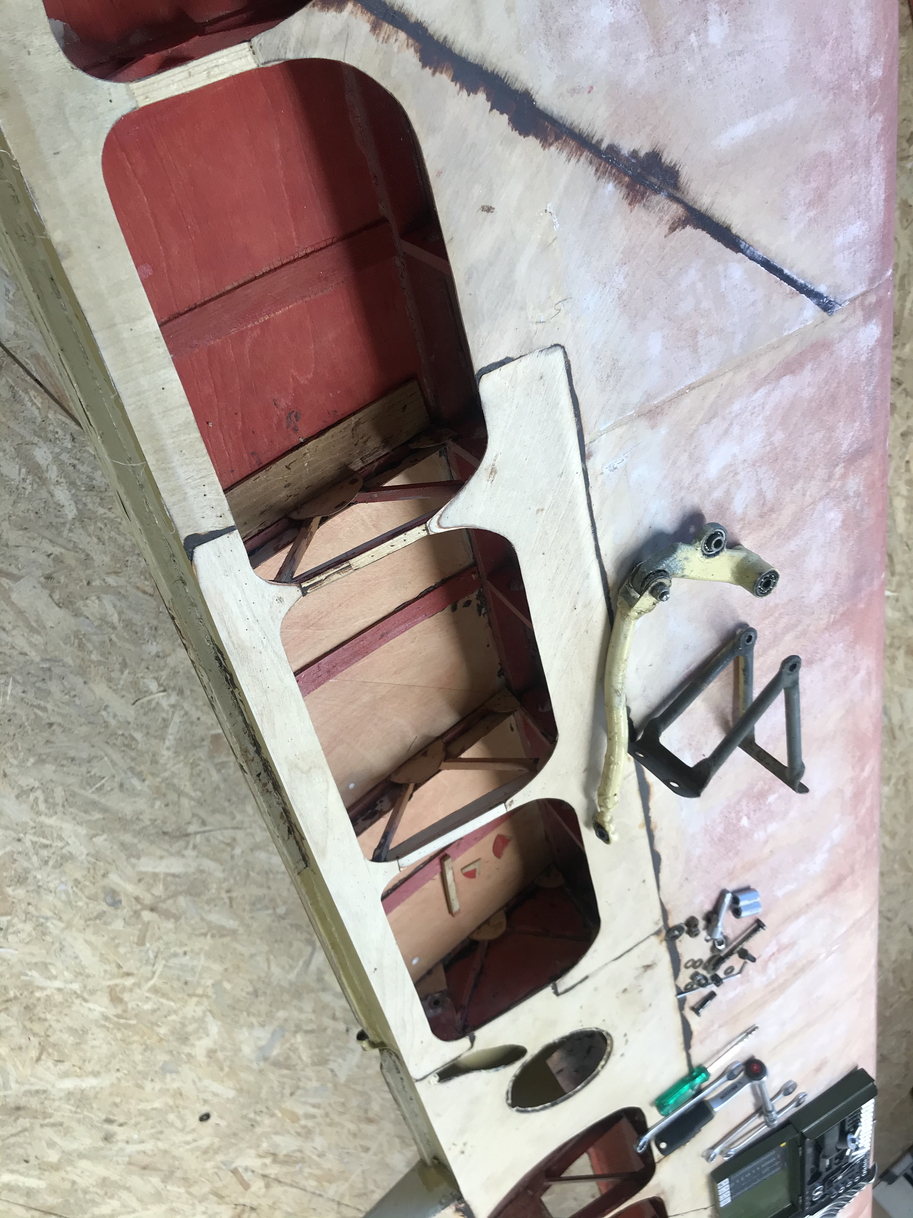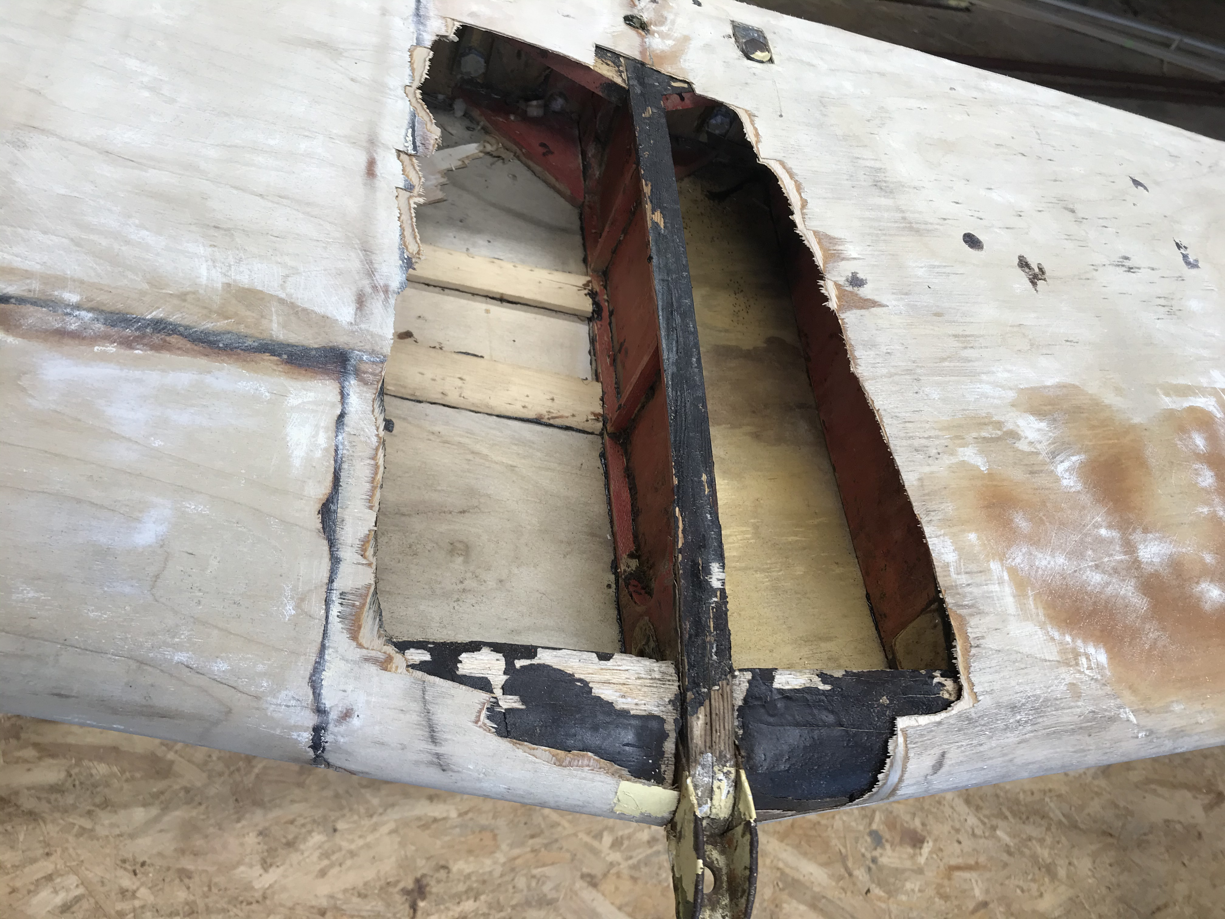Po kontroli oraz naprawie elementów drewnianych pokryto wszystkie elementy płatowca. Przygotowano powierzchnie do położenia nowej powłoki lakierniczej.