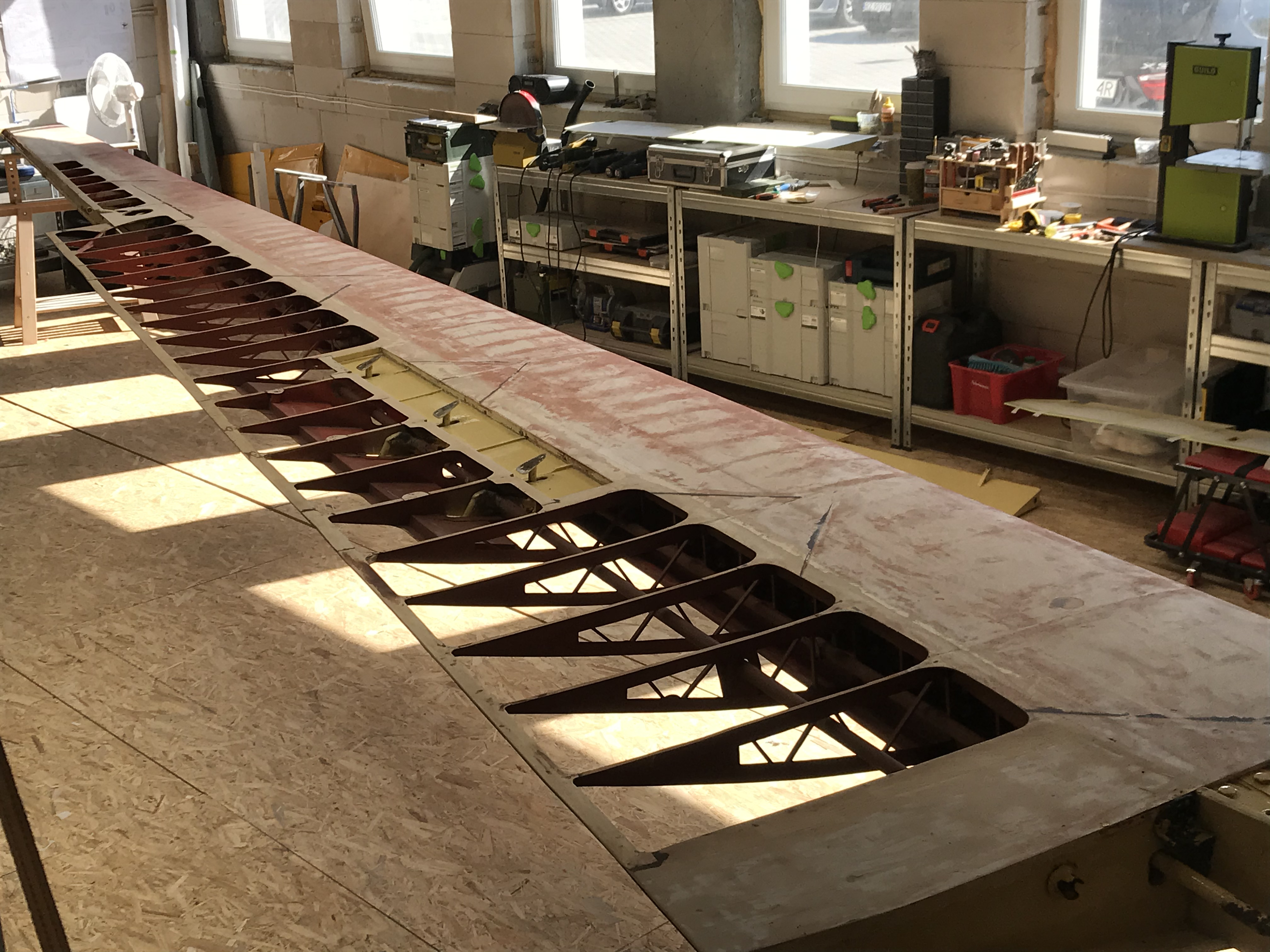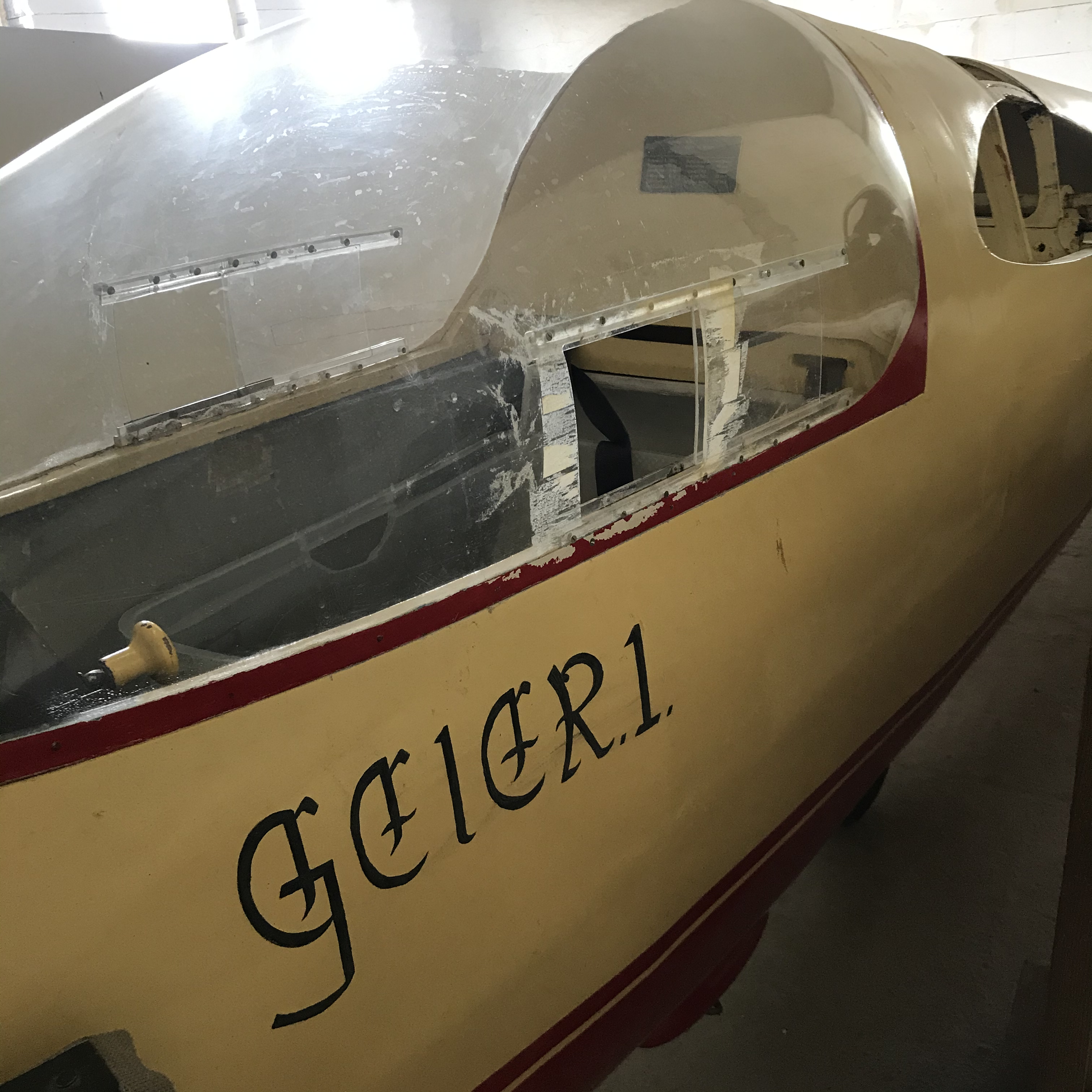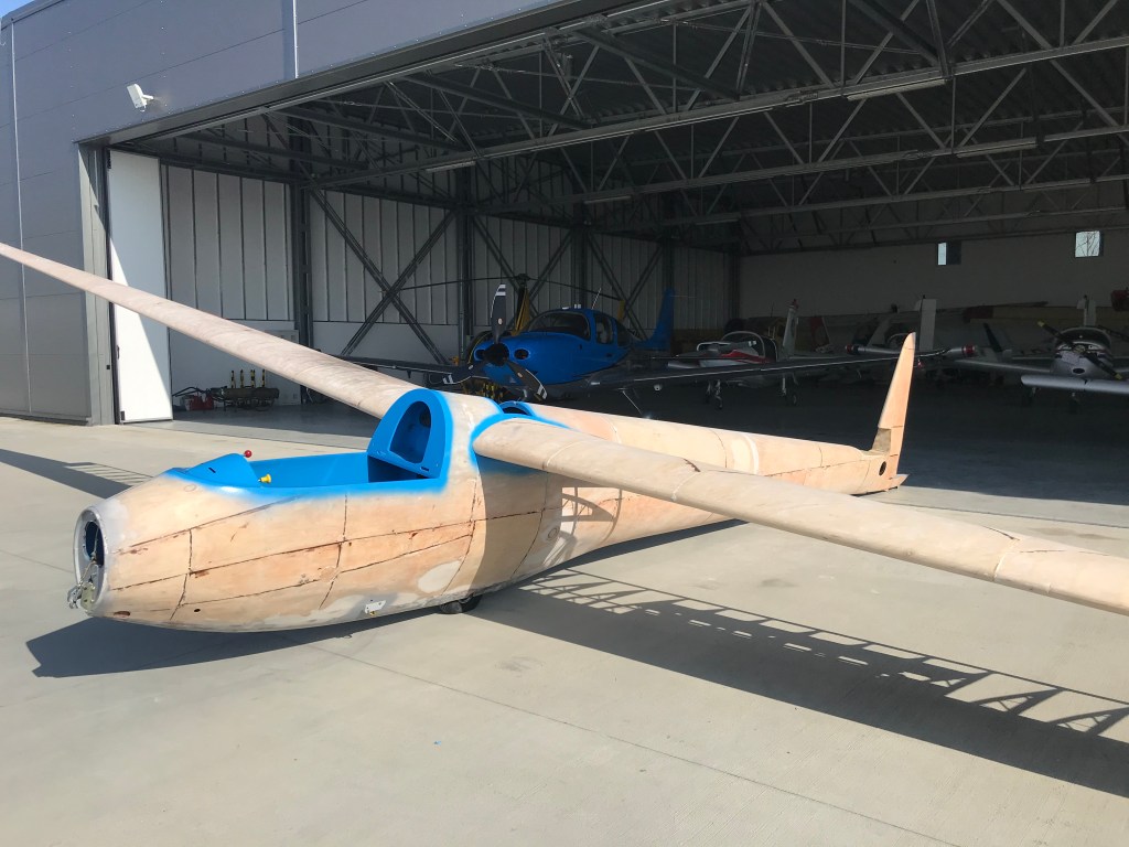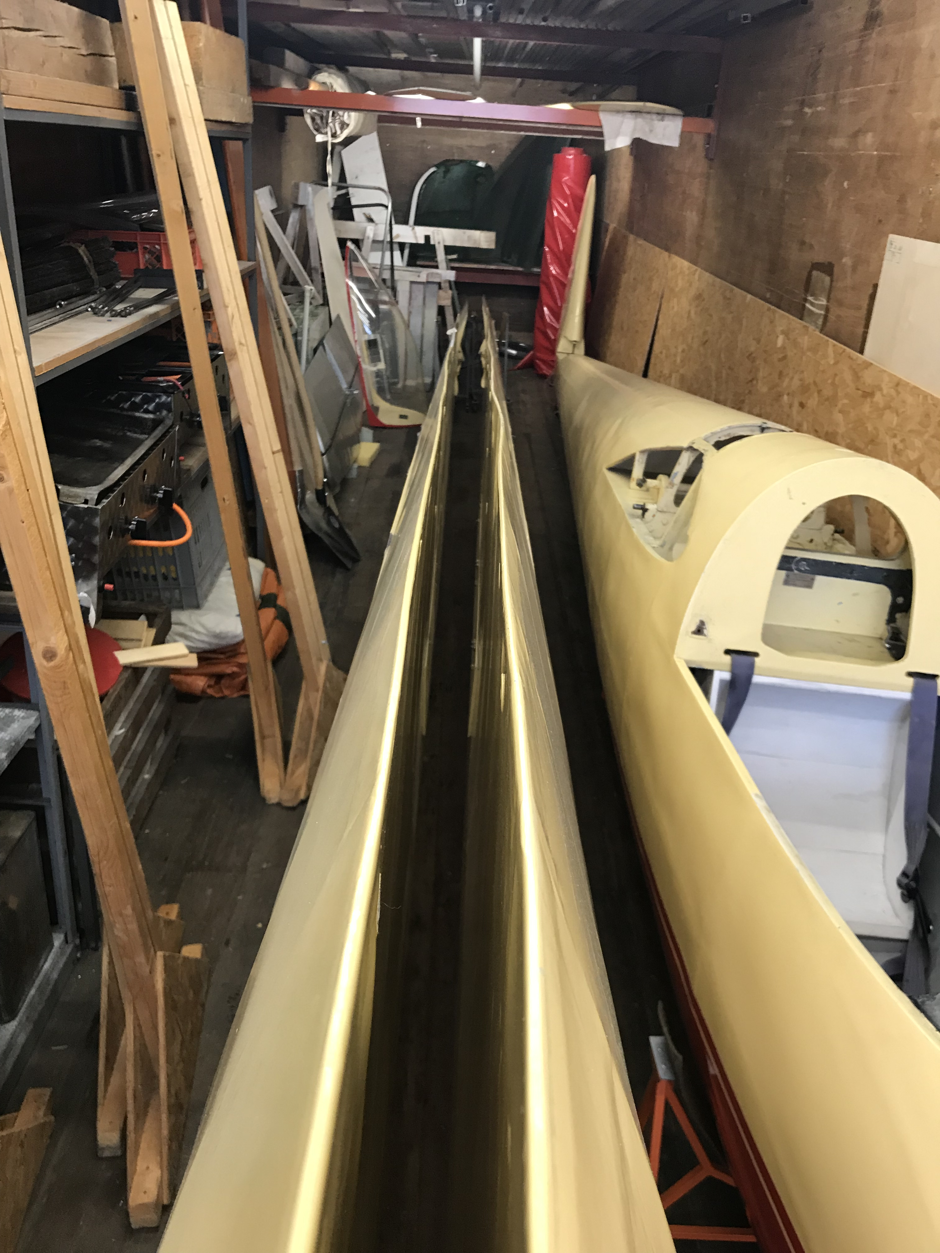 Geier przyjechał z niemieckiego lotniska Kempten-Durach w ciężarówce jeszcze na oryginalnym wózku. We współpracy z zaprzyjaźnioną firmą szybowiec został szybko rozładowany i wyruszyłem w drogę do warsztatu. Długość skrzydeł robi wrażenie jak na szybowiec z lat pięćdziesiątych.